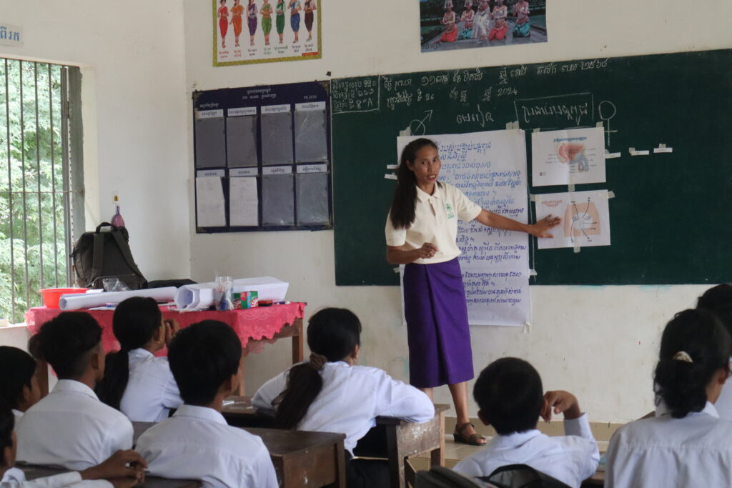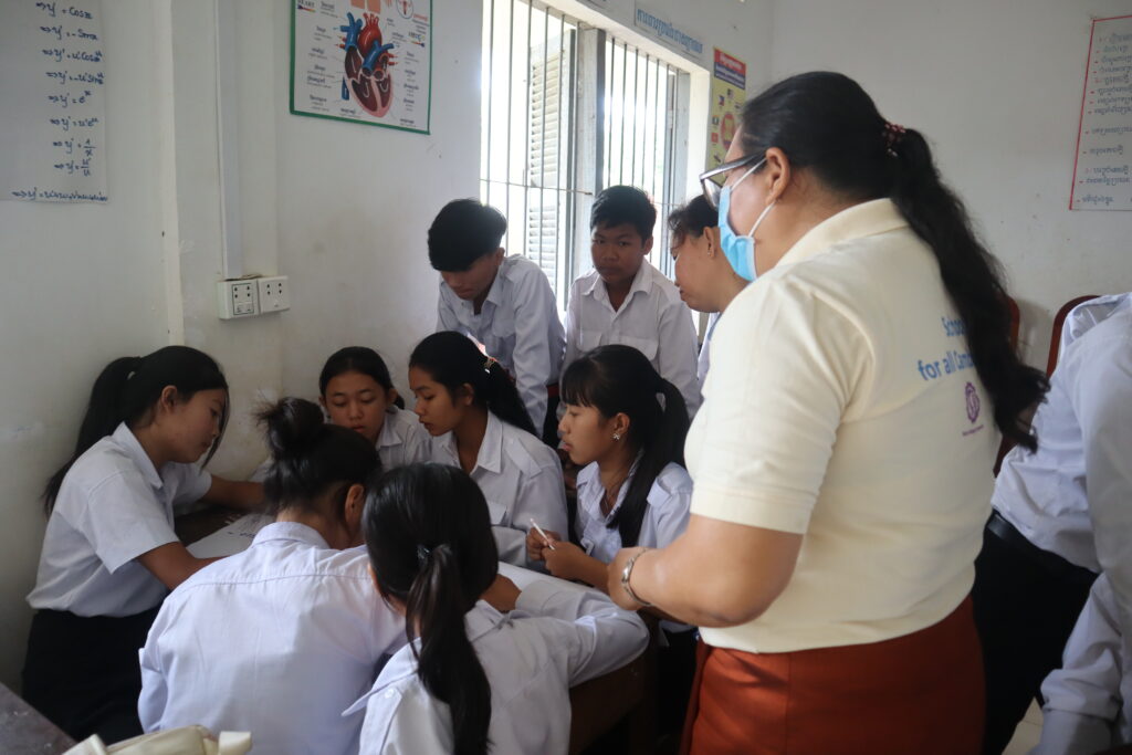 We observed a health class for Grade 9 students. Trial health lessons for Grade 8 students were given by lecturers from Battambang Teacher Education College (BTEC). Reproductive Health by Ms. Sambour Sithoau and Mental Health by Ms. Heng Tola.