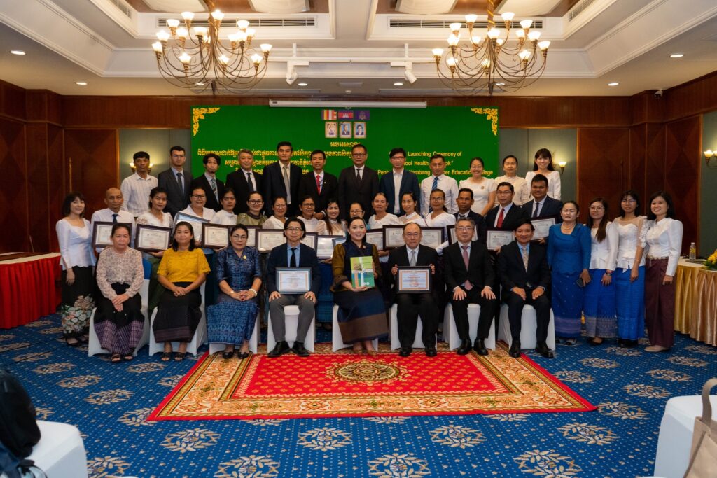 2023年3月24日、3年かけて完成したカンボジア教員養成大学の学生用の学校保健教科書が、日本財団の支援による東京学芸大のプロジェクトチーム”School Health for All Cambodian Children”からカンボジア教育省へと引き渡されました。4月にはこれから教師になる学生たちの手に渡り、授業で活用されて行きます。