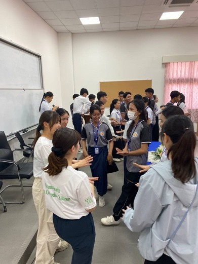 この反省を踏まえ、プノンペン教員養成大学(PTEC)附属小学校での指導方法を改善しました。導入部分では、私たちが英語で教えた内容をPTECの学生にクメール語に翻訳してもらうようお願いしました。また前日には模擬授業を行って、PTECの学生が保健指導の流れをイメージしやすくなるようにしました。保健指導をより良いものにしたいという共通の思いのもと、他のTGUの学生たちと協力し、短い準備期間でも内容を大きく改善することができました。